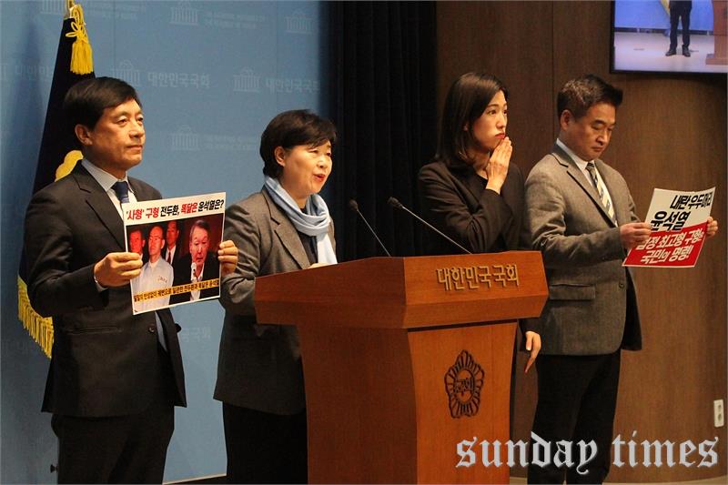 27일 오전 서울 여의도 국회 소통관에서 국회 원내정당 의원들과 함께 기자회견을 하는 더불어민주당 이소영 의원