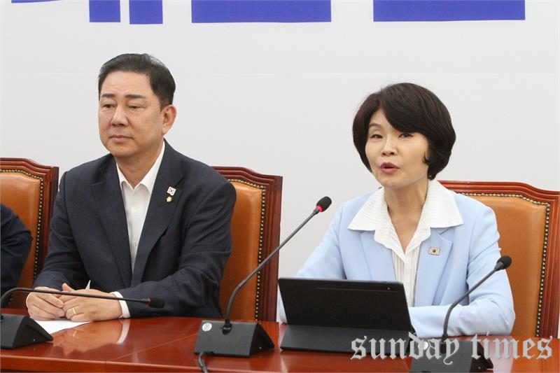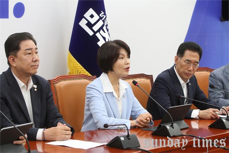 [선데이타임즈=윤석문 기자]한정애 더불어민주당 정책위의장이 7일 오전 서울 여의도 국회에서 열린 정책조정회의에서 “경제 도약은 이제 시작이다. 당과 정부는 원팀이 되어 대한민국의 회복과 성장에 더욱 매진하겠다”라며, “우선 2차 소비 쿠폰이 9월에 차질 없이 지급되도록 만전을 기하겠다. 또한 추가적인 소비 진작 대책도 속도감 있게 추진하겠다”라고 밝히며, 발언하고 있다.