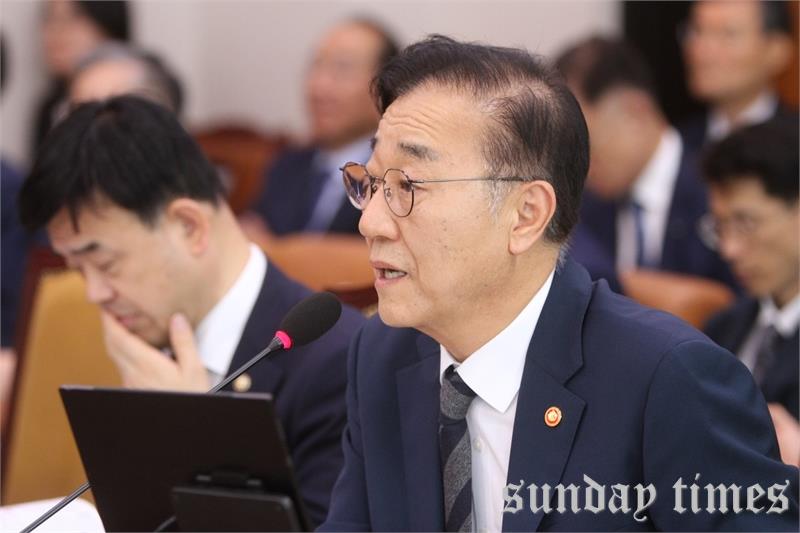 19일 오후 서울 여의도 국회에서 열린 국토교통위 전체회의에서 국민의힘 엄태영 의원 질의에 답변하는 김윤덕 국토교통부 장관