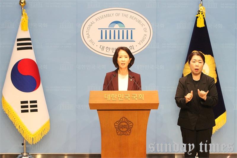 [선데이타임즈=윤석문 기자]최수진 국민의힘 의원(국민의힘 원내수석대변인)이 2일 오전 서울 여의도 국회 소통관에서 “더불어민주당 김경 서울시의원이 특정 종교단체 신도 3천 명을 권리당원으로 만들려 했다는 의혹이 제기됐다”며, “이어 의원실 직원의 6개월 치 당비 1,800만 원 대납 발언과 ‘김민석으로 가시죠’라는 녹취까지 공개되며, 내년 지방선거 불법 개입 논란은 더욱 커지고 있다”라고 밝히며, 기자회견에서 발언하고 있다.
