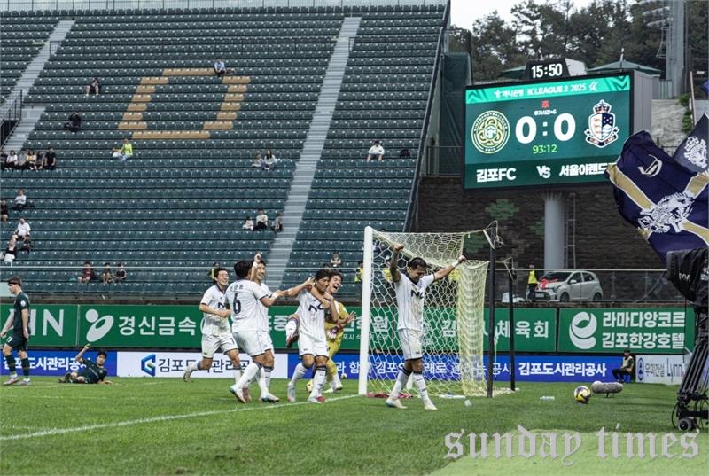[선데이타임즈=최윤혁 기자]서울 이랜드가 ‘승점 6점짜리 맞대결’에서 김포를 제압하고 플레이오프 진출권인 5위로 도약했다.