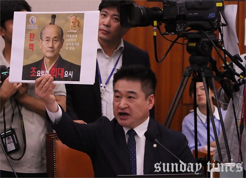 [선데이타임즈=윤석문 기자]이재명 정부 첫 국정감사가 시작된 13일 오전 서울 여의도 국회 법제사법위원회에서 열린 대법원에 대한 국정감사에서 무소속 최혁진 의원이 조희대 대법원장에게 질의하고 있다. 0 0 선데이타임즈 윤석문 smyun2000@hannail.net 윤석문의 기사 더보기 저작권자 ⓒ선데이타임즈, 무단전재 및 재배포 금지
