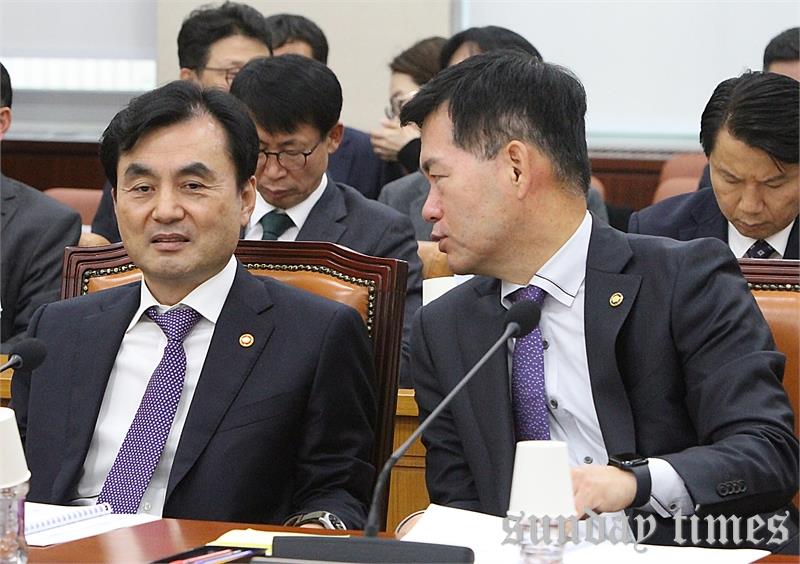 [선데이타임즈=윤석문 기자]석종건 방위사업청장이 13일 오전 서울 여의도 국회에서 열린 제429회국회(정기회) 국방위원회 전체회의에 참석하여 안규백 국방부 장관과 대화하고 있다. 0 0 선데이타임즈 윤석문 smyun2000@hannail.net 윤석문의 기사 더보기 저작권자 ⓒ선데이타임즈, 무단전재 및 재배포 금지