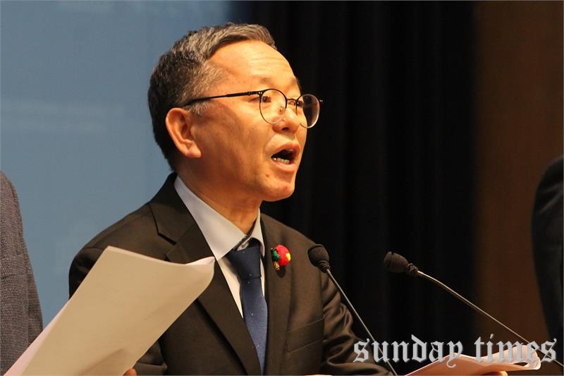 [선데이타임즈 =윤석문 기자]김문수 더불어민주당 의원이 9일 오전 서울 여의도 국회 소통관에서 열린 기자회견에서 전남 동부권을 대표하는 순천대와 전남 서부권을 대표하는 목포대의 통합 대학 명칭에 대해 “통합 대학의 정체성과 미래 비전을 담을 교명으로 ‘국립김대중대학교’를 공식 제안드린다”라며, “‘국립김대중대학교’는 통합 대학이 지향해야 할 가치와 미래 전략을 담은 상징적 이름”이라고 밝히며, 발언하고 있다.