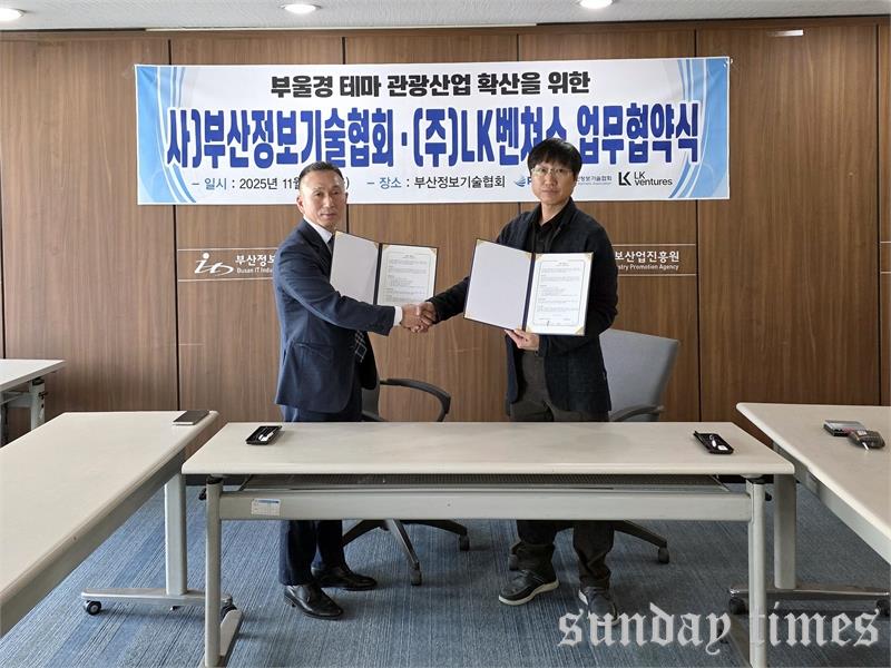[선데이타임즈=최현준 기자]부산정보기술협회(회장 박충식)와 인생네컷(LK벤쳐스 대표 이호익)이 11월 7일 부산SW지원센터(대연동) 대회의실에서 ‘부울경 테마 관광산업 확산을 위한 업무협약식’을 가졌다.부산정보기술협회는 25년 동안 부산 IT산업의 발전을 위해 중추적인 역할을 도맡아왔으며, MZ세대 감성 포토 스튜디오 브