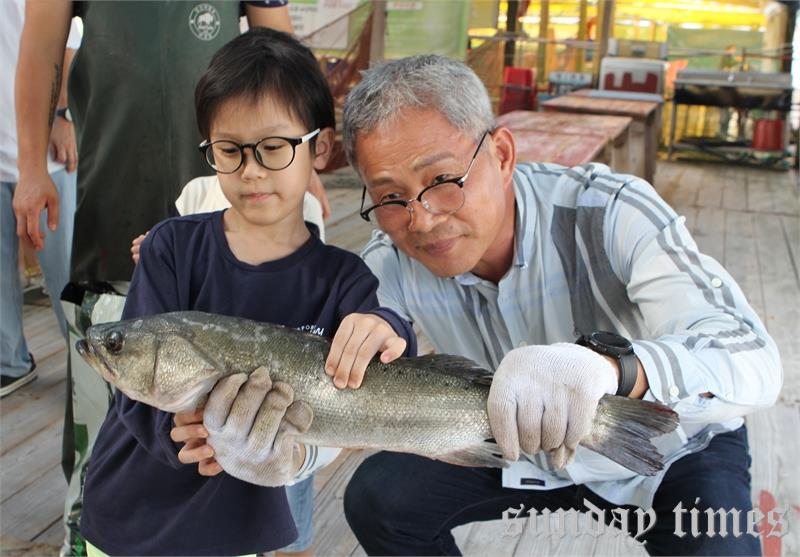 [선데이타임즈=서영민 기자]바다 위에서 낚시를 즐기고, 파도 소리를 들으며 하룻밤을 보낼 수 있는 해상펜션이 있는 충남 서산시 부석면 창리포구의 해양낚시터에서 26일 오후 낚시를 즐긴 가족들이 낚시로 잡은 고기를 들어 보이고 있다.