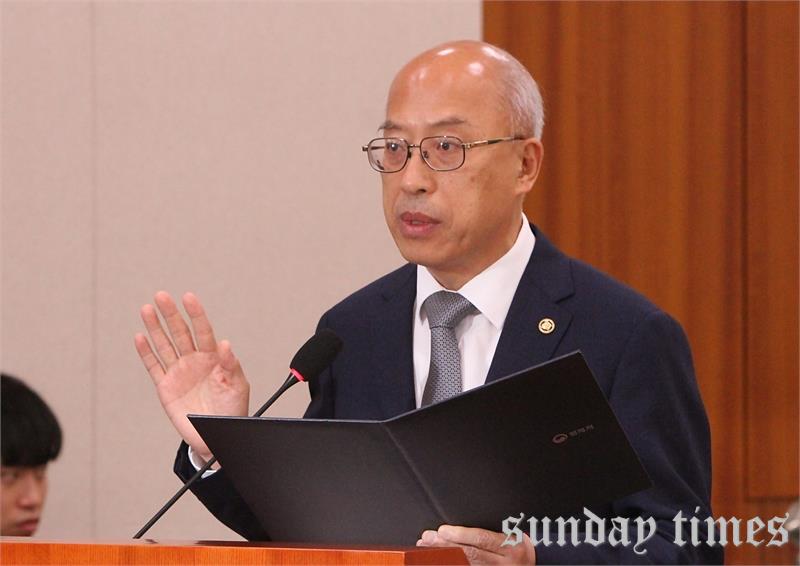 [선데이타임즈=윤석문 기자]국민의힘 김미애 의원이 오늘(2일) 국회 소통관에서 “더불어민주당이 국회 과방위 법안소위에서 공영방송의 지배구조를 친민주당, 친민주노총 성향의 인사들로 개악하는 내용의 방송법 개정안을 날치기로 통과시킨데 이어 어제(1일) 과방위 안건조정위원회에서도 다시 날치기로 법안을 처리했다”며, “국민의힘은 방송법이 국회를 통과한다면 헌법 53조에 규정된 대통령의 법률안 거부권 행사를 요청할 수밖에 없다”고 강조하며, 기자회견을 하고 있다.