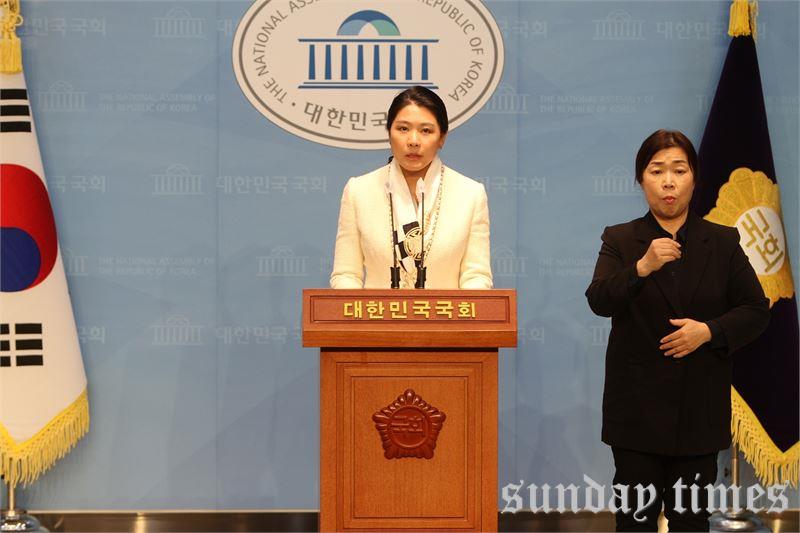 국회 소통관에서 기자회견을 하고 있는 신현영 의원