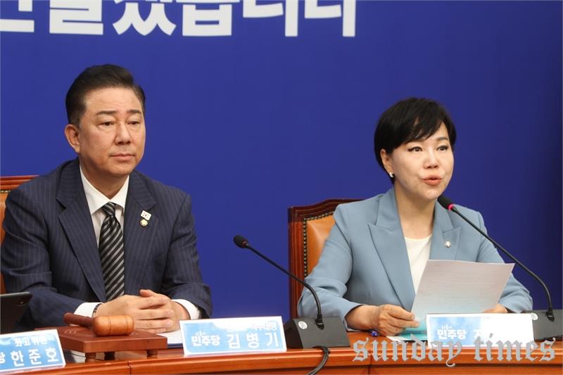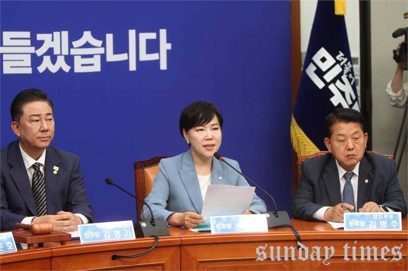 [선데이타임즈=윤석문 기자]전현희 더불어민주당 최고위원이 16일 오전 서울 여의도 국회에서 열린 최고위원회의에서 “국힘은 새 정부의 국무총리 인사청문회를 묻지마 인신 공격이 아닌 국민 눈높이와 상식에 맞는 인사 검증에 전념하기를 바란다”며, “국힘은 내란으로 국정 마비와 인사 공백을 초래한 원죄가 있음을 잊지 마라. 반성 없이 새 정부의 인사와 국정 발목을 잡는 내란정당 국힘은 조금이라도 양심이 있다면 내란 청산을 위한 새 정부의 국정 회복 노력에 적극 힘을 실어야 할 것”이라며, 발언하고 있다.