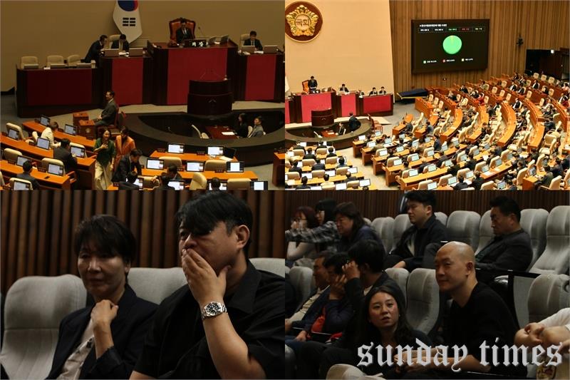 25일 서울 여의도 국회에서 열린 본회의에서 통과된 문신사법과 이를 지켜보는 문신사 제도화 민관 협의체 TFT 김도윤(하단 우측)과 신유정(하단 좌측)