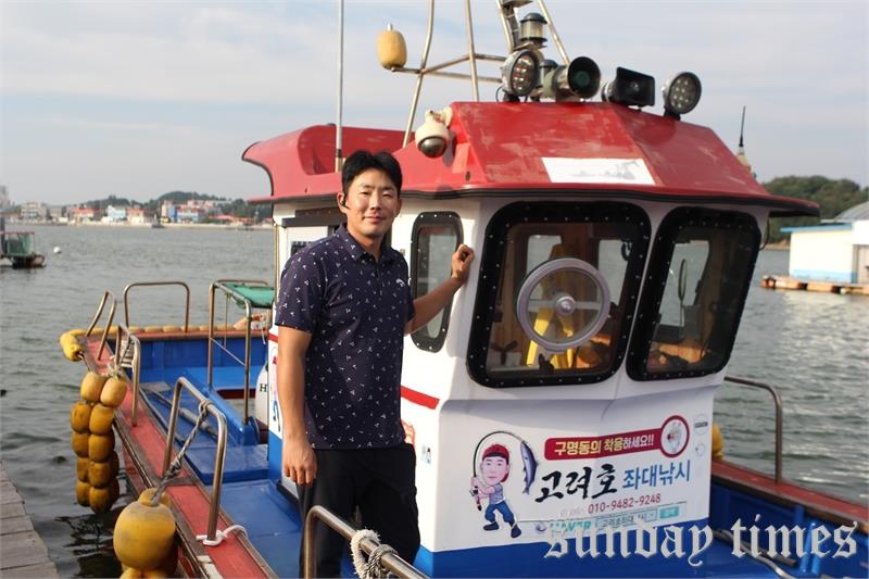 충남 서산시 부석면 창리포구의 해양낚시터에서 가족및 낚시 이용객을 육지에서 해양낚시터로 이동시켜주고 있는 박태욱 어촌계장