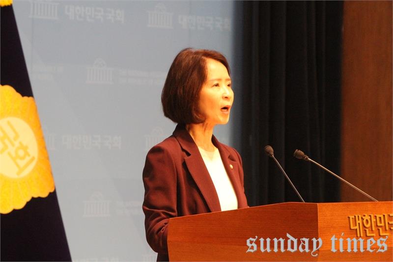 [선데이타임즈=윤석문 기자]최수진 국민의힘 의원(국민의힘 원내수석대변인)이 2일 오전 서울 여의도 국회 소통관에서 “더불어민주당 김경 서울시의원이 특정 종교단체 신도 3천 명을 권리당원으로 만들려 했다는 의혹이 제기됐다”며, “이어 의원실 직원의 6개월 치 당비 1,800만 원 대납 발언과 ‘김민석으로 가시죠’라는 녹취까지 공개되며, 내년 지방선거 불법 개입 논란은 더욱 커지고 있다”라고 밝히며, 기자회견에서 발언하고 있다.