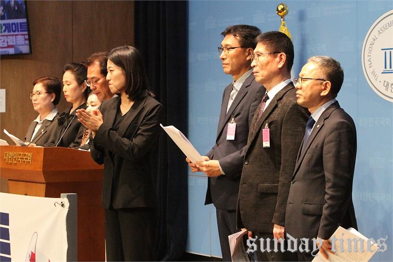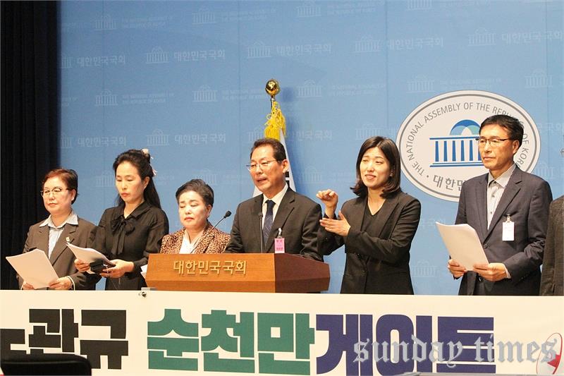 [선데이타임즈=윤석문 기자]김문수 더불어민주당 의원이 14일 오후 서울 여의도 국회 소통관에서 김건희 특검 요청 범 순천시민 연대와 함께 ‘김건희노관규 순천만게이트 특검수사’를 촉구하는 기자회견에서 발언하고 있다.