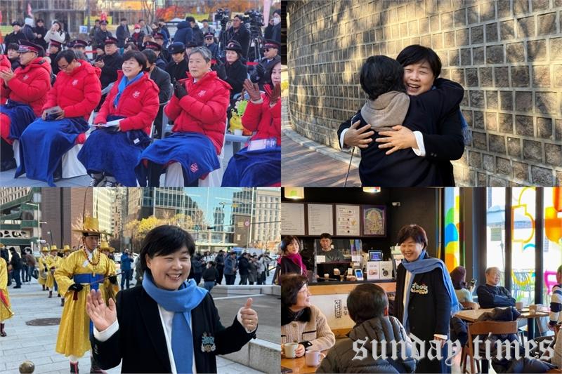 28일 구세군 자선냄비 시종식 참석 후 시민들과 직접 만나 소통하는 경청 투어 ‘덕수궁·광화문 데이트’를 진행하며, 시민들과 함께 ‘세계 최고의 서울, 진짜 대한민국’을 만들어 나가겠다고 밝힌 서영교 의원이 거리에서 만난 시민들과 함께 기념촬영을 하고 있다<사진=의원실>