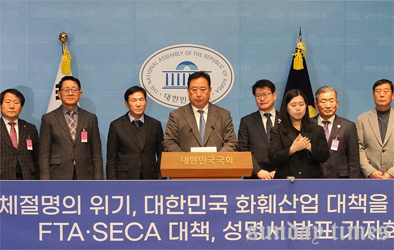 [선데이타임즈=윤석문 기자]어기구 더불어민주당 의원(충남 당진시, 국회 농림축산식품해양수산위원장)이 8일 오전 서울 여의도 국회 소통관에서 열린 ‘대한민국 화훼산업 발전 대책 촉구’ 기자회견에서 “10여년 전 중국과 베트남, 콜롬비아와 FTA 체결 후 수입이 100배 증가한 품목도 있다”며, “국화, 카네이션 등의 국내 화훼 시장 주도권이 우리에게 없으며, 국내 화훼산업에 막대한 피해를 주고 있다. 그런데 정부는 이렇게 해놓고 에콰도르와 또 SECA를 체결하려고 한다”라고 밝히며, ‘대책 없는 한국-에콰도르 SECA 국회 비준 반대’에 대한 발언을 하고 있다.